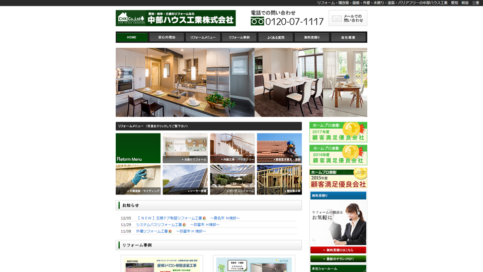 「安心の実績」「安心の品質」「安心の無料相談」3つの安心で、本物のリフォームを提供してくれます。