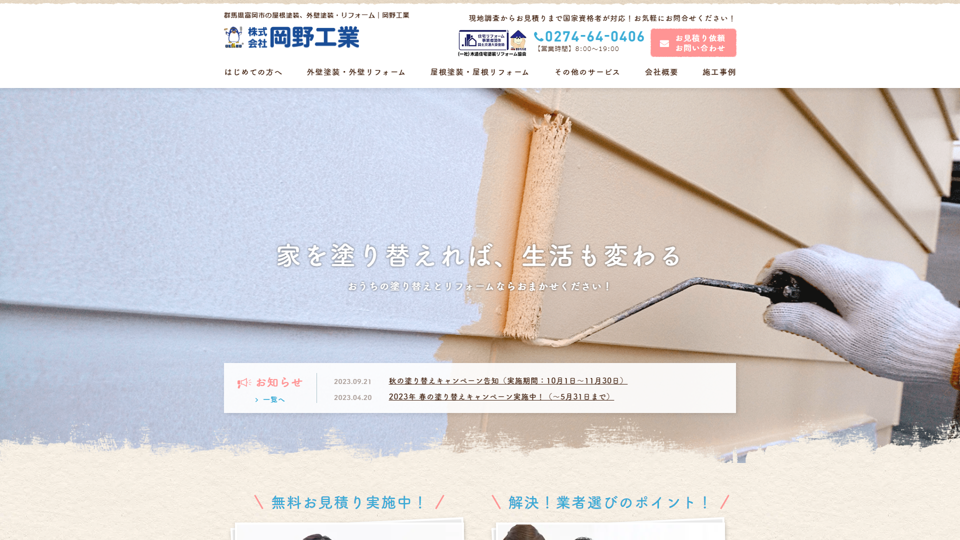 確かな技術ときめ細かなサービスで、塗装工事から屋根葺き替えまで高品質な施工を提供しています。