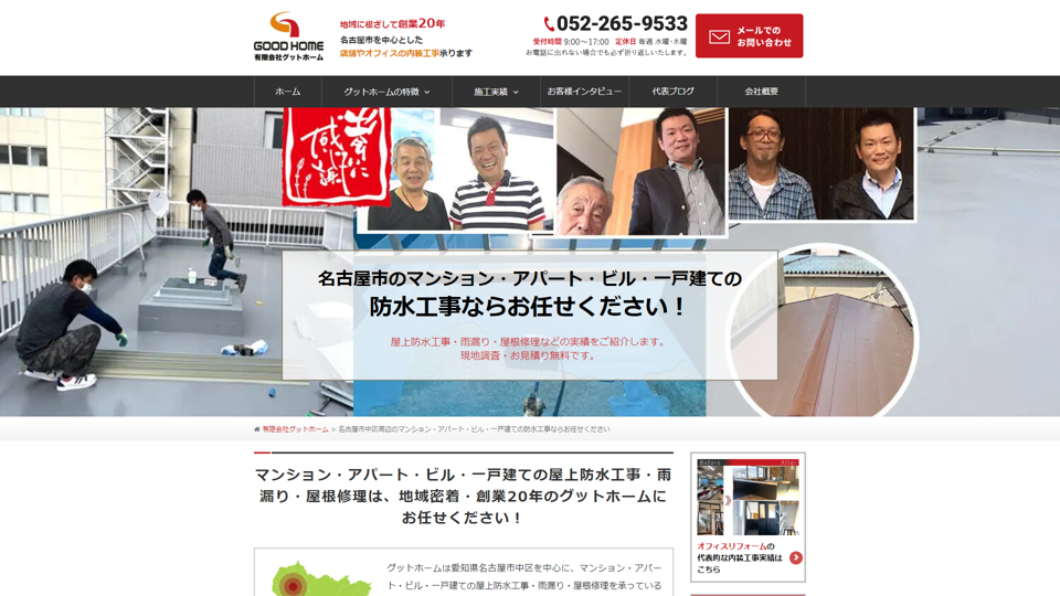 迅速な対応や丁寧な施工が評判であり、主に愛知県、岐阜県、三重県、静岡県などで施工してきました。