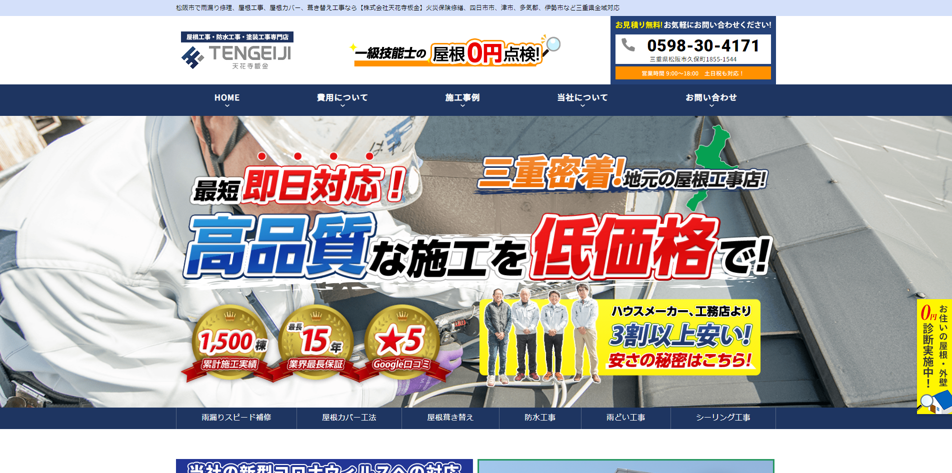 三重県鈴鹿市で屋根修理・雨漏り修理の専門業者をお探しなら、未来創舎にお任せください!一級瓦技能士による確かな技術力で、高品質な屋根工事を実現します。屋根や雨漏りの無料診断・お見積もりを行っておりますので、費用面も含めてご納得いただいた上で工事をご依頼いただけます。