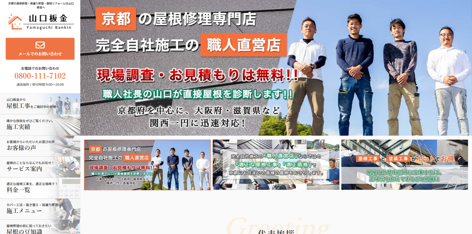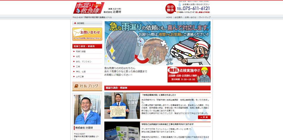 京都市内であれば30分以内に駆けつけてくれるため、雨漏りなど緊急のトラブルがあった場合の心強い味方になってくれます。