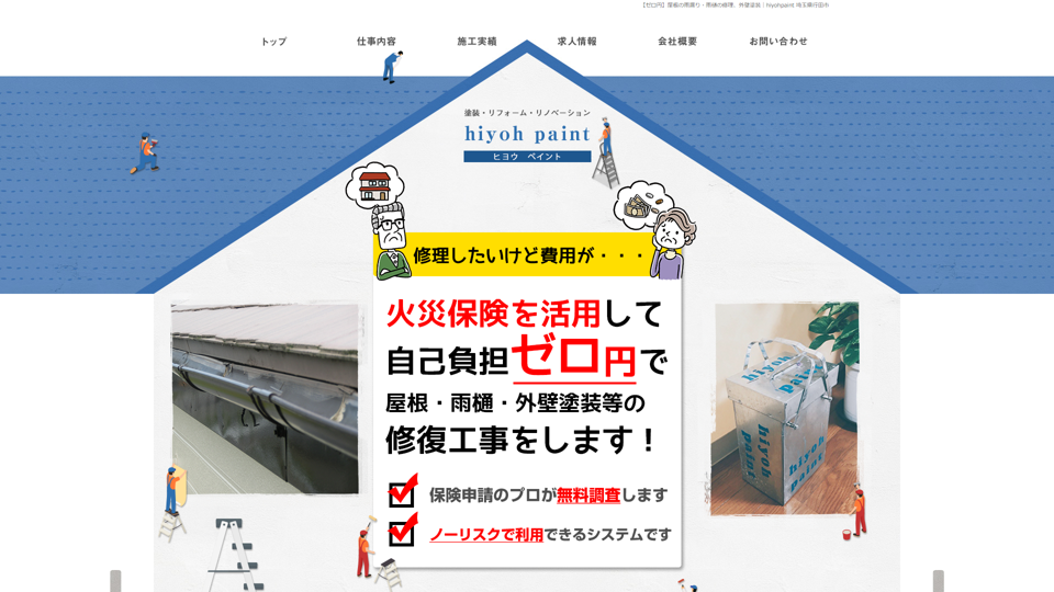 hiyohpaintは、火災保険を活用したお得な方法を推奨しており、火災保険を活用することで実施負担0円塗装を実現させることが可能です。