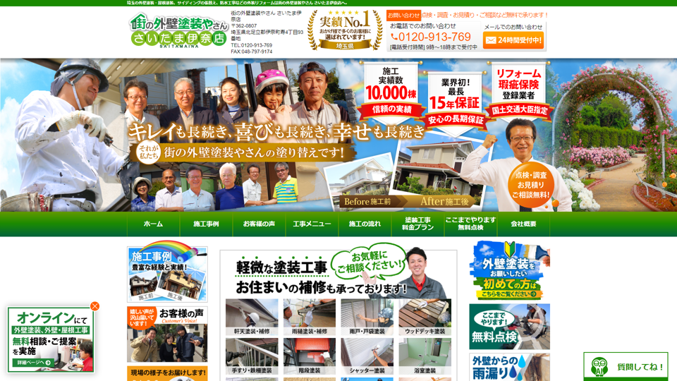 埼玉県伊奈町で対応可能なオススメの屋根塗装・外壁塗装業者をピックアップしました。