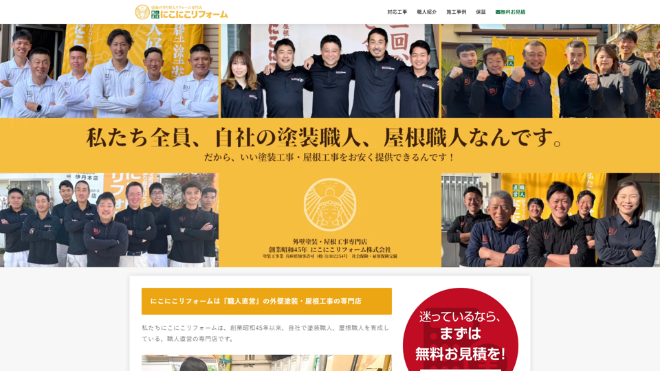にこにこリフォーム株式会社は、伊丹市高台に拠点を構える創業45年の外壁・屋根塗装の専門店。