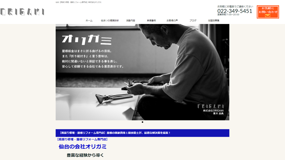 なごみルーフは、地元宮城に根付く屋根修理専門店です。小さな修理はもちろん、屋根カバー工法や葺き替え、屋根塗装や雨樋交換などを得意とする会社です。 それぞれの工事に専門の職人が在籍し、日本瓦やスレート、トタンやガルバリウムなどのあらゆる金属系屋根の修理に対応できます。積水などのハウスメーカーや地元工務店で建てた物件、アパートや工場の屋根でも、屋根の事ならどんな事でも対応できる屋根修理のエキスパート集団です。大手出身の一級建築士が顧問を務めており、住宅の骨格に合った屋根材を100種類以上の中から選択し、お客様のご要望に合った提案することができます。