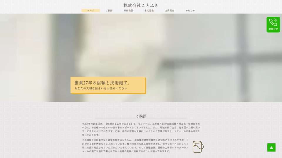 株式会社ことぶきは、東京都と神奈川県に6店舗を展開する塗装・リフォームのプロフェッショナル集団。