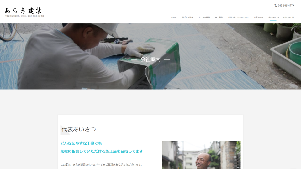 あらき建装は、国立市を拠点に平成19年創業の信頼と実績のある外壁・屋根塗り替え専門店。
