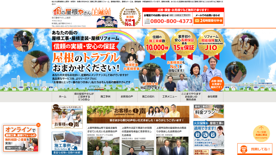 ネットで調べてみると屋根修理や屋根リフォーム工事を行っている業者は新潟県上越市を中心に集中しており、「どの業者を選ぶべきか分からない」という声をたくさん聞きます。