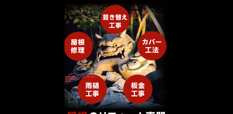 瓦屋根の葺き替えを専門に扱う業者でストレート屋根、粘土瓦やセメント瓦、アスファルトシングル等の屋根修理に特化した業者です。