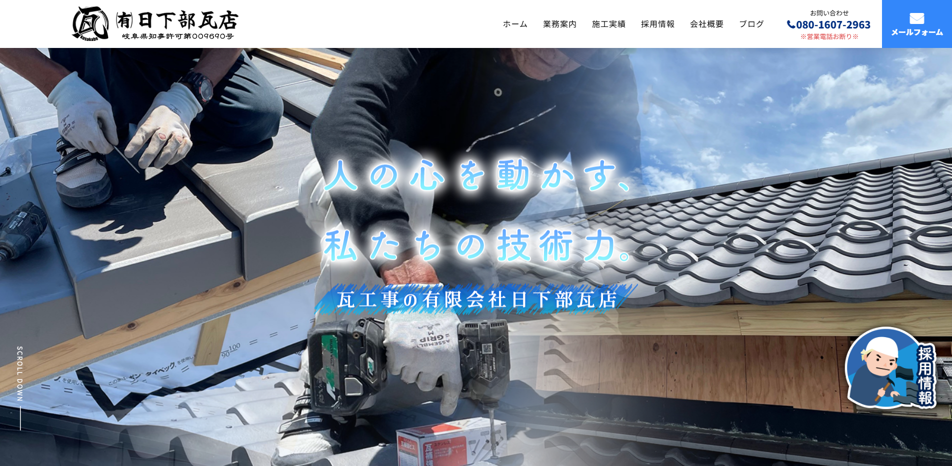 有限会社日下部瓦店は、岐阜県下呂市に拠点を置く創業40年以上の屋根工事専門業者です。瓦屋根の新築施工・葺き替え・修理を中心に、雨漏り修理や屋根診断も手がけ、熟練の職人が高品質な施工を提供しています。