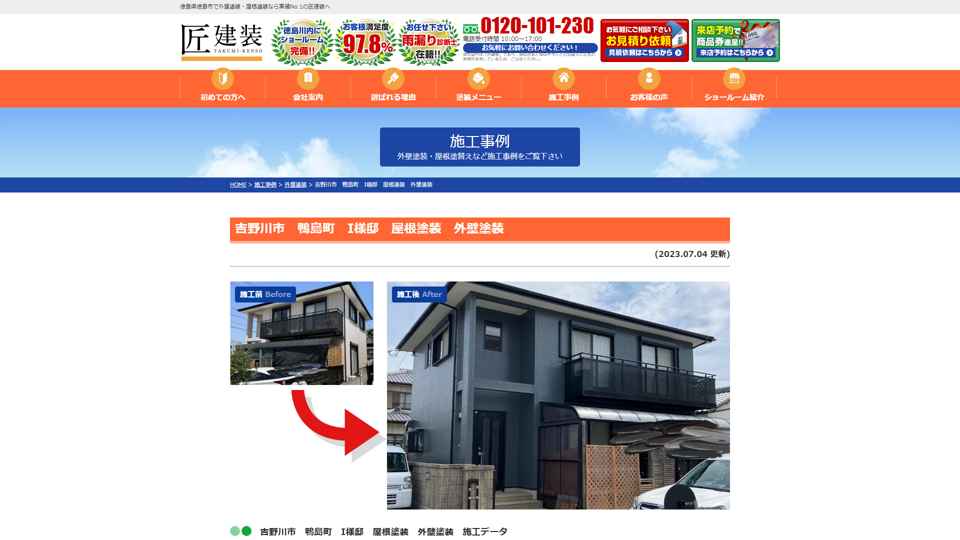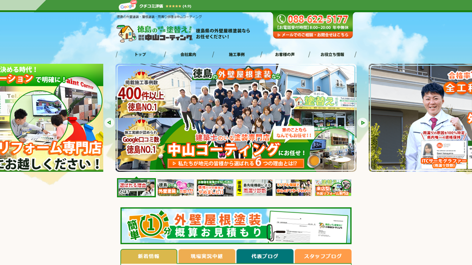 掲載施工事例350件以上・Google口コミどちらでも徳島県NO.1という素晴らしい実績を誇ります。
