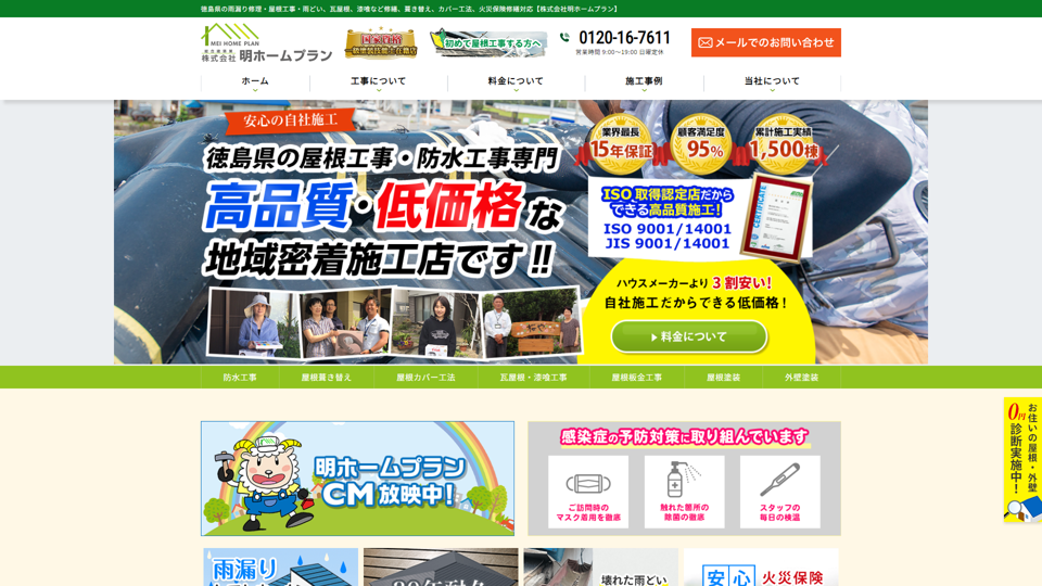 株式会社明ホームプランは、徳島県徳島市徳島町にある屋根修理・雨漏り修理の会社。
