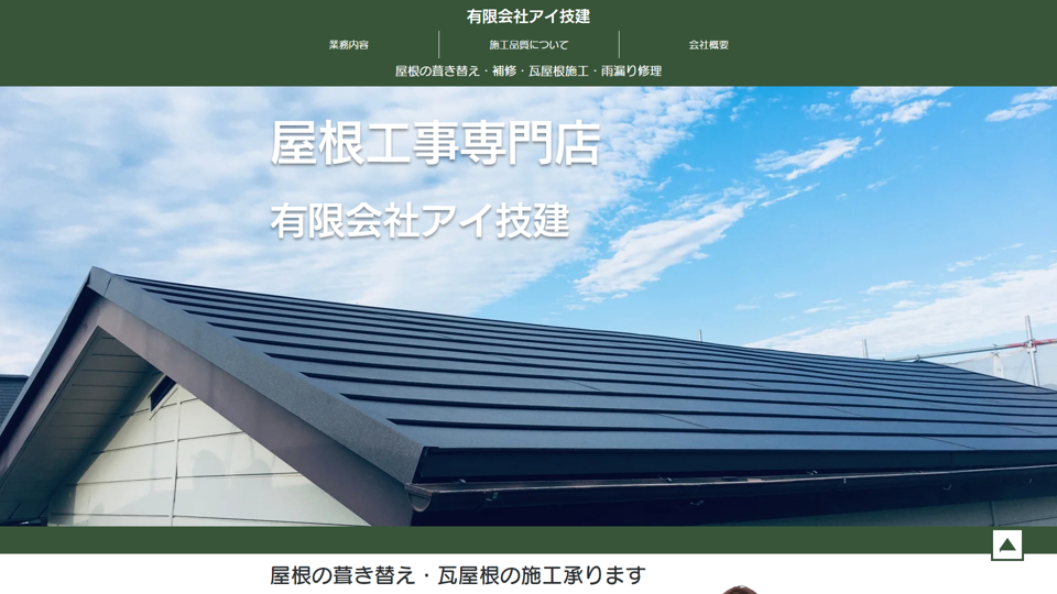 有限会社アイ技建は、愛媛県松山市にある屋根修理専門の会社です。