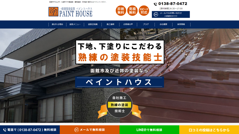 ペイントハウスではあえて函館市及び近郊に営業エリアを絞ることで、困りごとや問い合わせに対して迅速な対応を行っています。