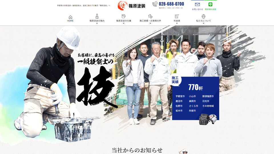 | 資格 | 1級塗装技能士、建築施工管理技士、外装劣化診断士、かわらぶき技能士、遮熱施工管理士、足場組立作業主任者 |