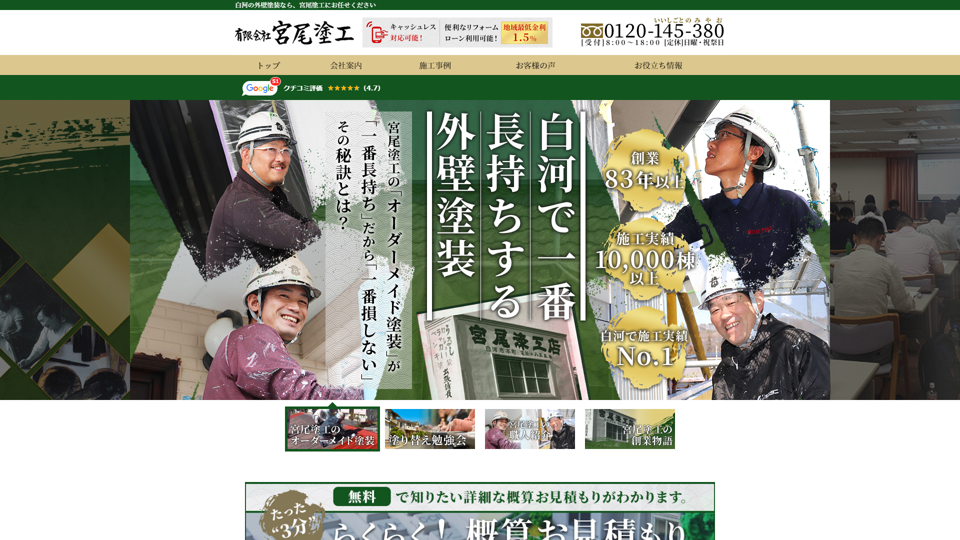 株式会社稲見塗装は、那須塩原市を中心に営業する創業35年の信頼と実績を誇る外壁塗装専門店。