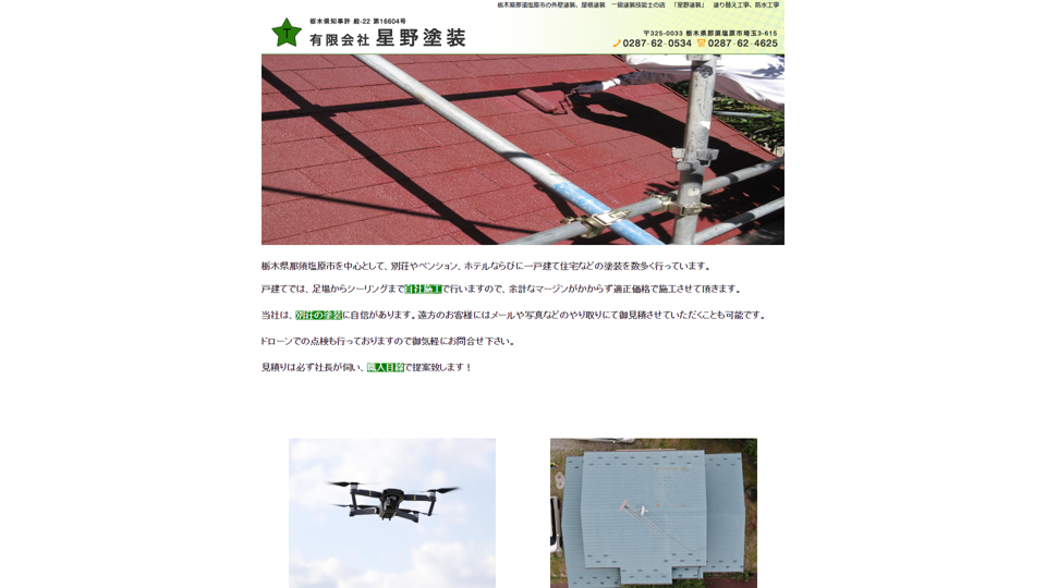 那須塩原市を拠点に営業する有限会社星野塗装は、大田原市周辺エリアで50年以上の実績を持つ外壁塗装・屋根塗装専門店。