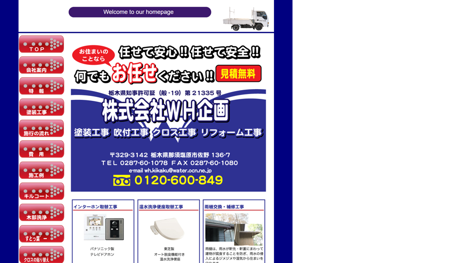 那須塩原市を拠点に営業する株式会社WH企画は、塗装・吹付・クロスなど住まいのリフォーム全般に対応する工事店。