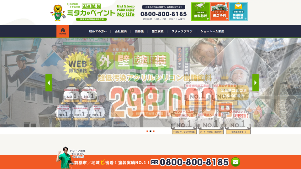 ミタカ+ペイントは、年間100棟以上・累計2,200棟以上の外壁塗装実績を持つリフォーム店。