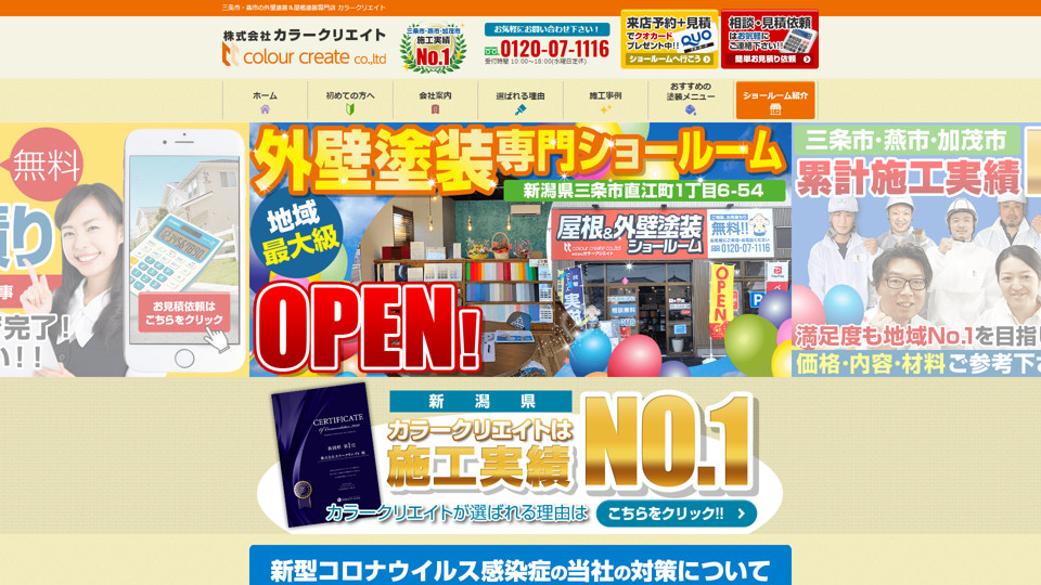 中越エリアで「友人・知人に勧めたい塗装店No.1」、「お客様満足度No.1」、「アフターフォロー満足度No.1」といった実績のある会社です。