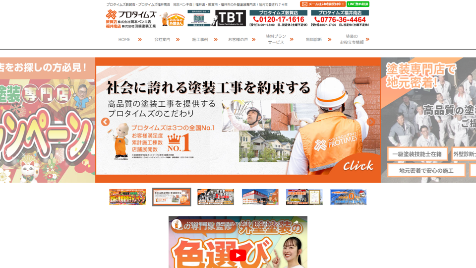 株式会社岡本ペンキ店は、福井県敦賀市に拠点を置くプロタイムズグループ加盟の外壁塗装専門店。