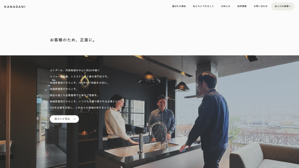 株式会社カナダニは、福井県鯖江市に本社を置く、昭和48年8月に設立された地域密着型のリフォーム会社。