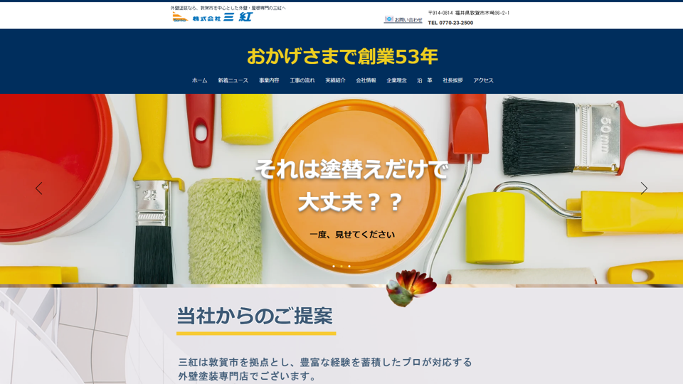 福井県敦賀市を拠点に活動する株式会社三紅は、創業から53年の信頼と実績を誇る外壁・屋根塗装専門店。