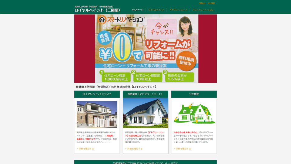 長野県上伊那郡を中心に営業する合同会社ロイヤルペイント(三國屋)は、中南信地区で1,000棟以上の施工実績を持つ外壁塗装専門店。
