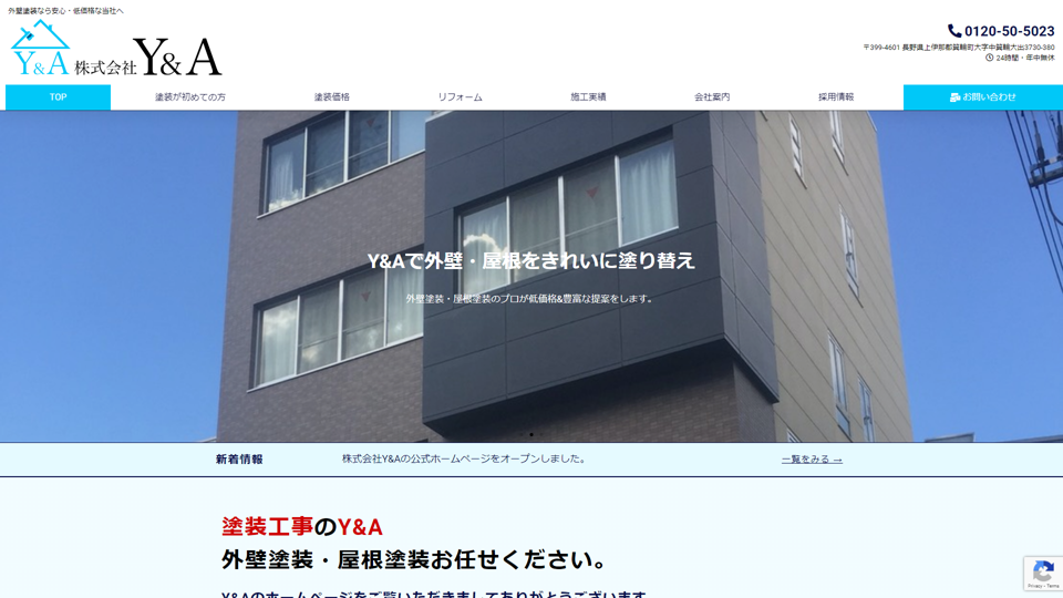 株式会社Y&Aは長野県箕輪町に本社をかまえ、周辺エリアで年間100件以上の施工実績を持つ外壁屋根塗装専門店。