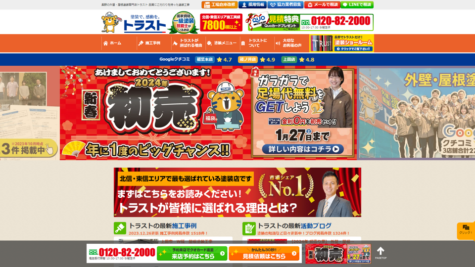 株式会社トラストは、長野県北信・東信地域で7,800棟以上の施工実績を持つ外壁・屋根塗装専門店。