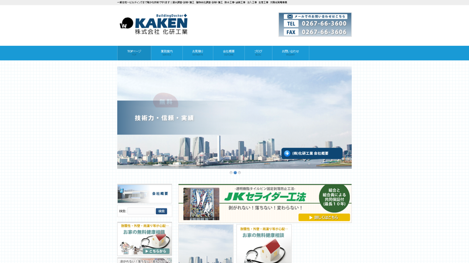 株式会社化研工業は、佐久市を拠点に一般住宅からビルまでの建物劣化調査・診断・施工・塗装工事などに対応する総合リフォーム会社。