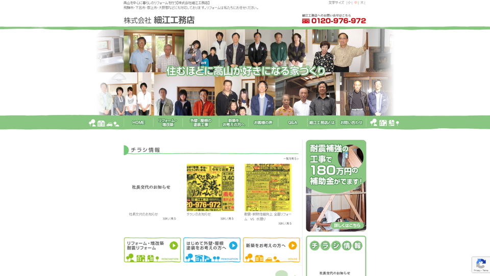 株式会社細江工務店は、新築着工棟数785棟:増改築・リフォーム1,333棟の実績を持つ工務店。