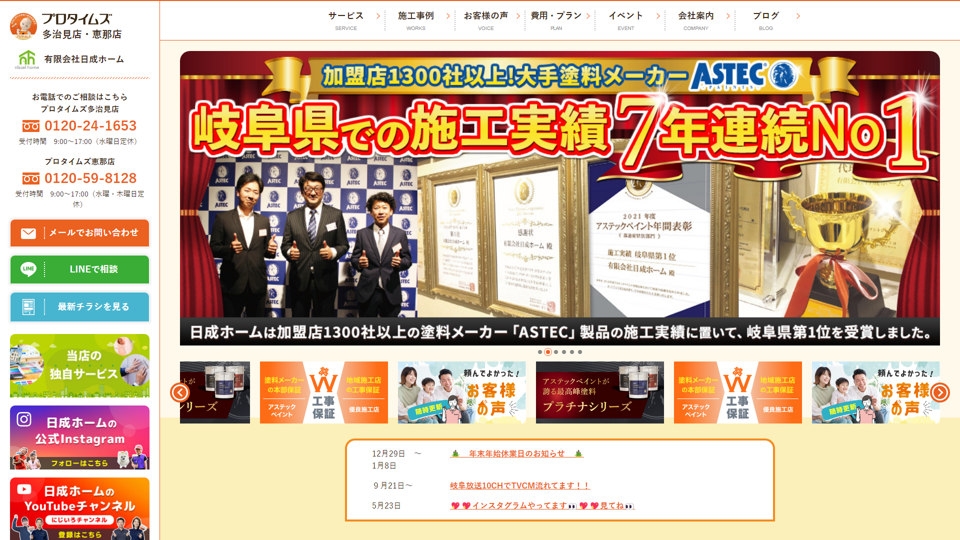 有限会社日成ホーム(プロタイムズ多治見店・恵那店)は、多治見市・土岐市・瑞浪市・恵那市・中津川市の外壁塗装・屋根塗装専門店。