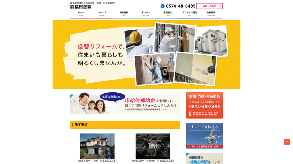 有限会社福田塗装は、岐阜県美濃加茂市を中心に46年の実績を持つ塗替リフォーム専門店。