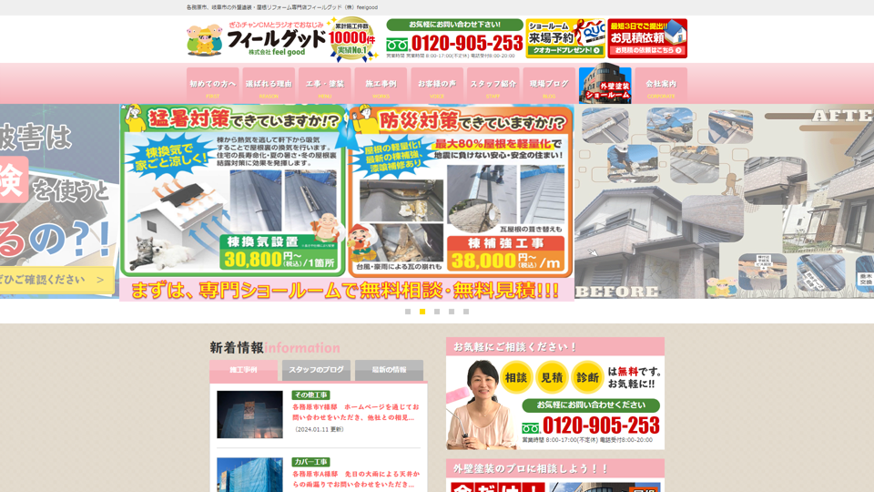 各務原市の株式会社feelgoodは、岐阜市、美濃加茂市などのエリアで10,000件の施工実績を持つ外壁塗装・屋根リフォーム専門店。