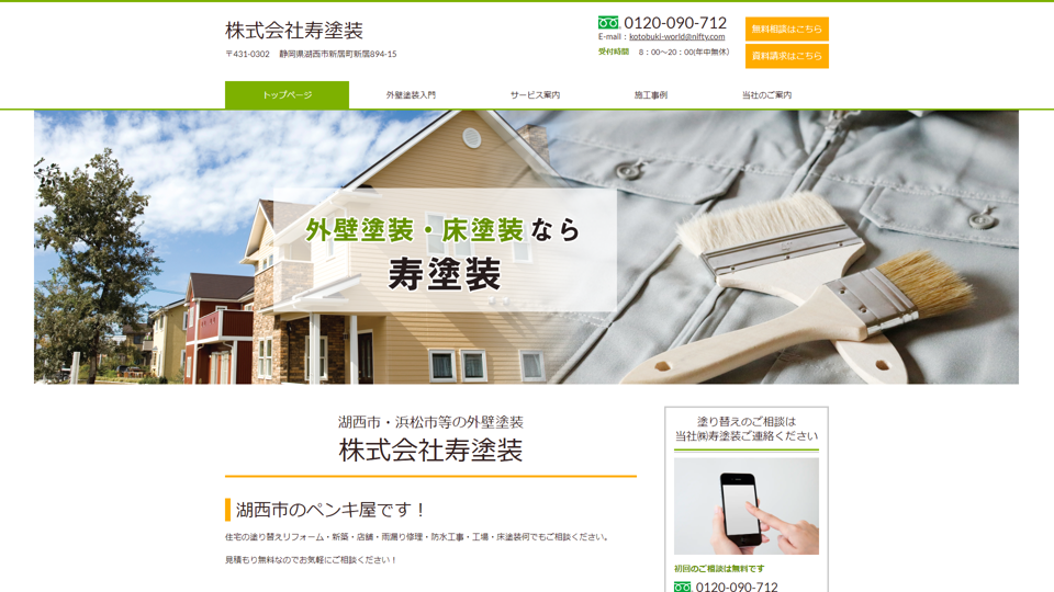 株式会社寿塗装は、住宅の塗り替えリフォーム、工場・食品工場・厨房の床塗装(塗床)、塗り壁などを手がける塗装専門店です。