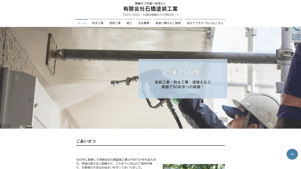 有限会社石橋塗装工業は、京都府舞鶴市に事務所を構える創業50年以上の建築塗装会社。