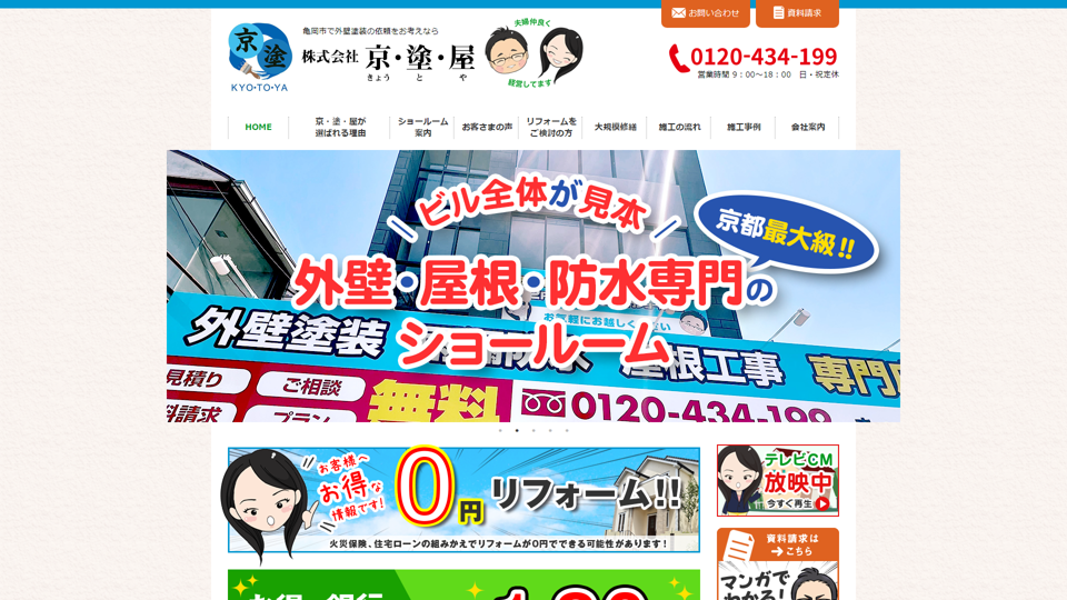 株式会社京・塗・屋は、亀岡市を中心に4,000件以上の施工実績を持つ外壁塗装、屋根工事、防水工事の専門店。