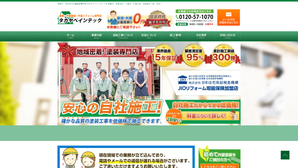 プロタイムズ宇治店(株式会社WORLD)は、京都府宇治市を中心に200例以上の実績を持つ外壁塗装・屋根塗装専門店。