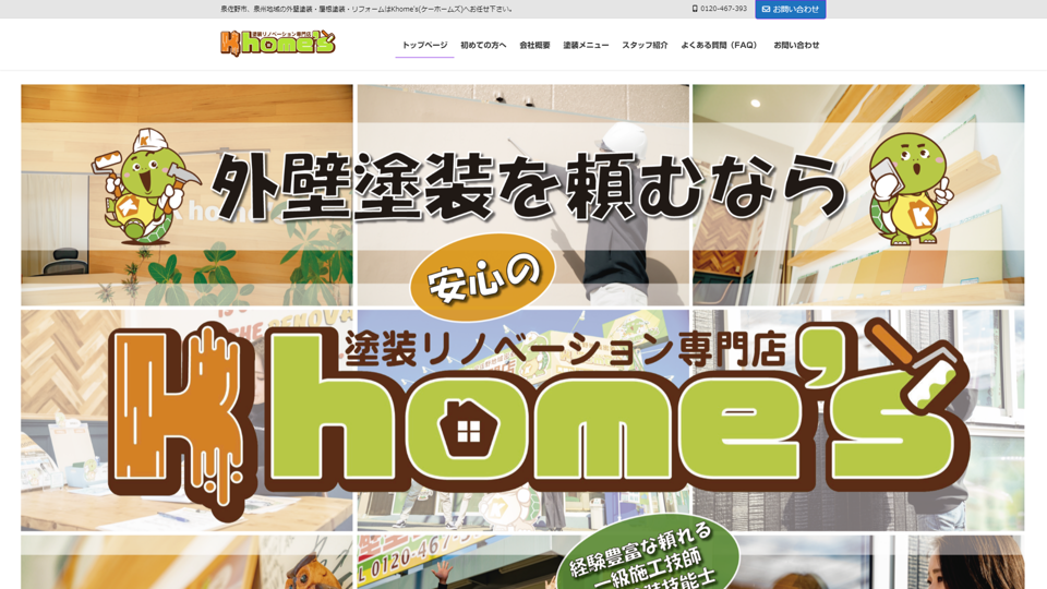 Khome’s(ケーホームズ)は、大阪泉佐野地域を拠点に関西全域をカバーする外壁塗装・屋根塗装・リフォーム専門店。