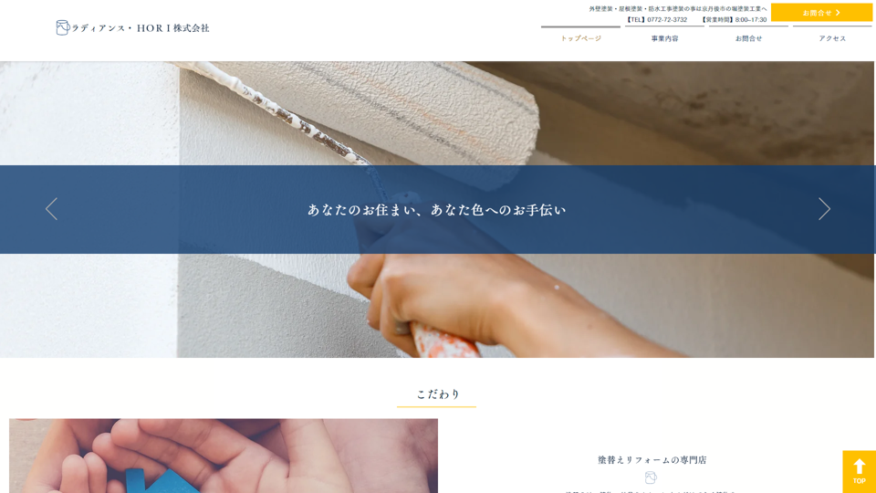 京都府京丹後市を中心に営業するラディアンス・HORI株式会社は、地域に密着した実績のある外壁塗装・屋根塗装・防水工事塗装の専門店。