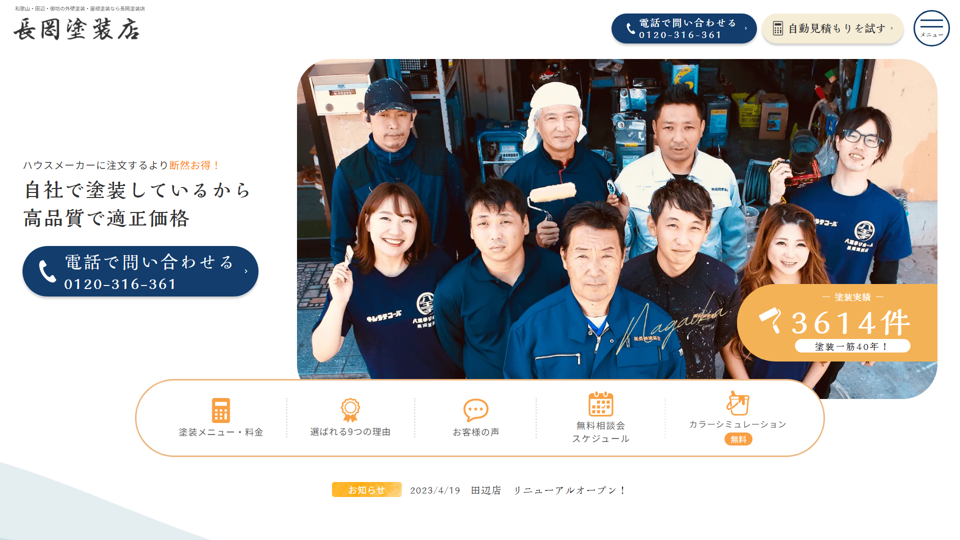 創業40年間、和歌山県で地域密着型として働いているため、急なトラブルや早く見積もりが欲しいお客様でも、安心して相談できるスピード対応が魅力です。