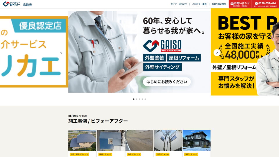 株式会社ティーエイト(ガイソー鳥取店)は、屋根や外壁など外装リフォームに特化した専門店。