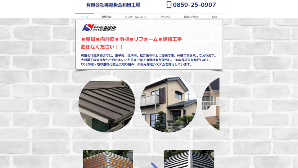 鳥取県米子市に拠点を置く有限会社境港板金和田工場は、米子市、境港市、松江市を中心に屋根工事、外壁工事を手がける会社。