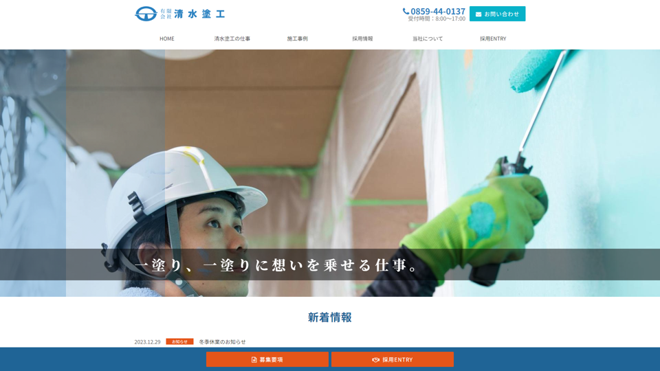 鳥取県境港市に本社を置く有限会社清水塗工は、昭和29年創業の歴史ある塗装専門店。