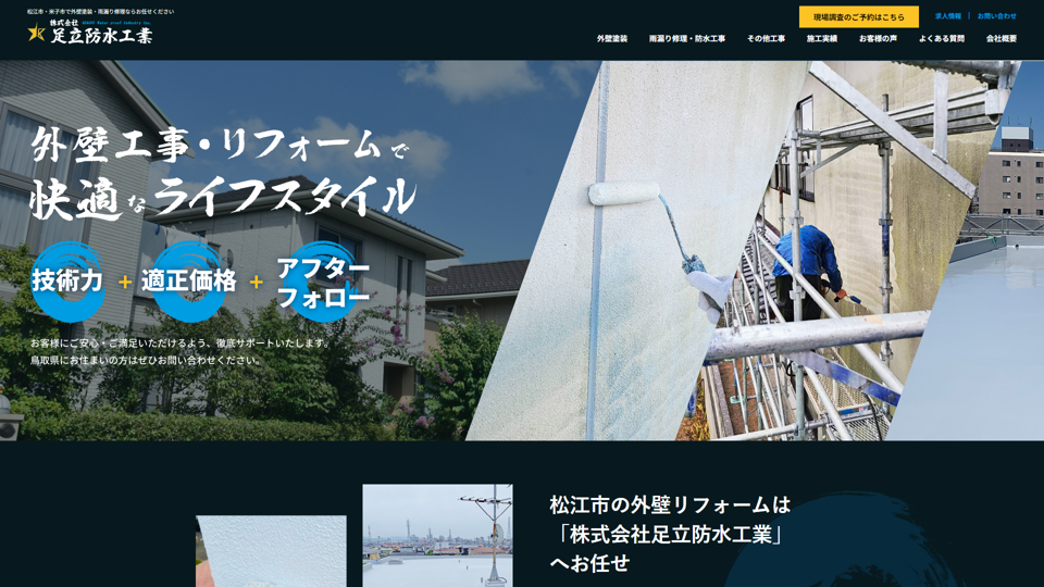 株式会社足立防水工業は、鳥取県境港市を拠点に、松江市、米子市、境港市、安来市を中心に鳥取県内全域で外壁塗装や雨漏り修理を手掛ける専門店。