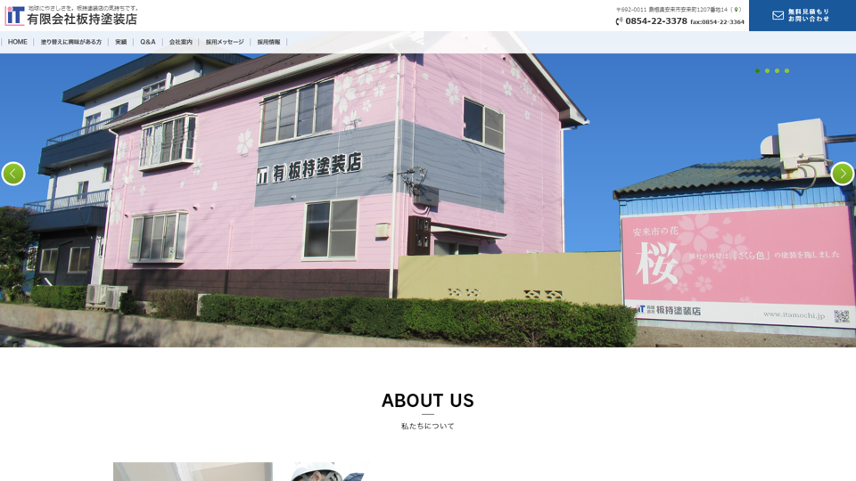 昭和40年創業の有限会社板持塗装店は、島根県安来市に拠点を置く塗装専門会社。