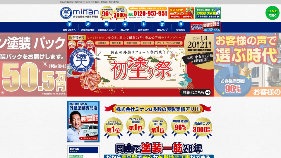 株式会社ミナンは、岡山県内地域密着で外壁・屋根塗装、外装リフォーム工事をしています。