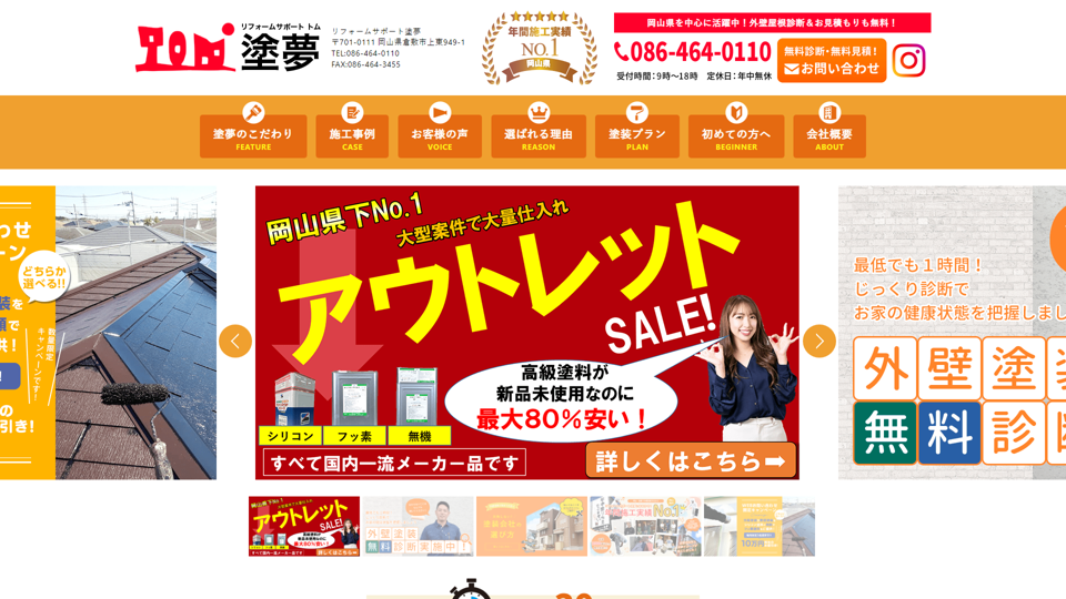 株式会社リフォームサポート塗夢は、地元倉敷で40年以上の歴史を持ち、年間1,000棟以上の塗装工事を行っています。
