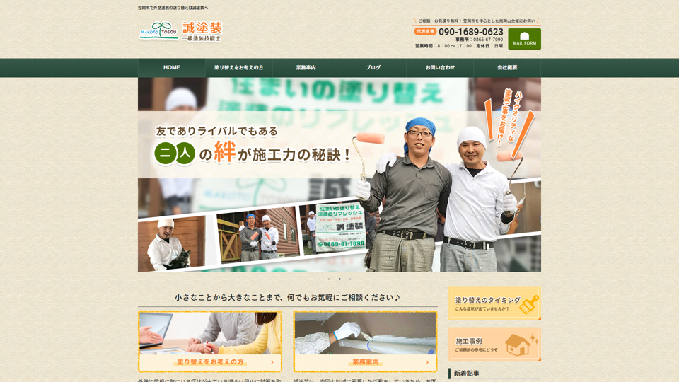 誠塗装は、地域密着型で地域の皆さまが安心して依頼できるように、大きな工事から地井さん工事まで柔軟に対応できます。
